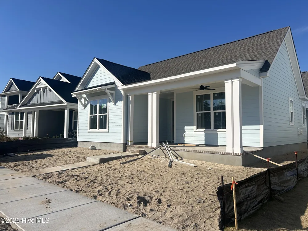 Estimated Completion: February 2026! Our interior designers have outdone themselves with the selections in this gorgeous home! Conveniently located a short walking distance to the new amenities which include a new pool, clubhouse, gym and pickleball courts! The Martin, built by New Leaf Builders has 3BD, 2BA, an open floor plan, & spacious covered porch that makes entertaining a breeze! The home features 9' ceilings, a gas fireplace with built-ins, gas range and gas tankless hot water heater. Interior features include a Frigidaire stainless steel appliance package that includes a gas range, vent hood, microwave and dishwasher, gorgeous LVP floors, Desert Silver quartz kitchen counters in the kitchen, zero entry fully tiled walk-in shower, high-end tile, fixtures, lighting and more. The Martin offers an enticing array of innovative spaces expertly designed around a covered central courtyard, accessible from your main living areas. Our unique courtyard encourages owners to create an outdoor living or dining room as an additional space to relax and renew. The Martin's courtyard truly extends your living space and your possibilities. Coming home to the Martin is a joy. A generously proportioned open kitchen encourages engagement with friends and family from both the living and dining rooms and guests will appreciate the graciousness of a full guest bathroom. As an owner, you'll relish the ample storage of dual closets at the primary bedroom, situated at the rear of your home for the ultimate in privacy and convenience. Riverlights is a new home community surrounded by the coast and Cape Fear River, where nature is part your everyday routine. With easy access to the Cape Fear River, the intercoastal waterways, a family-friendly pool, a new dog park, gym and a 38-acre lake, you can kayak, paddleboard or stroll along the community dock any time of day. Enjoy the three-mile loop around the lake and scenic nature trails that weave throughout Riverlights.