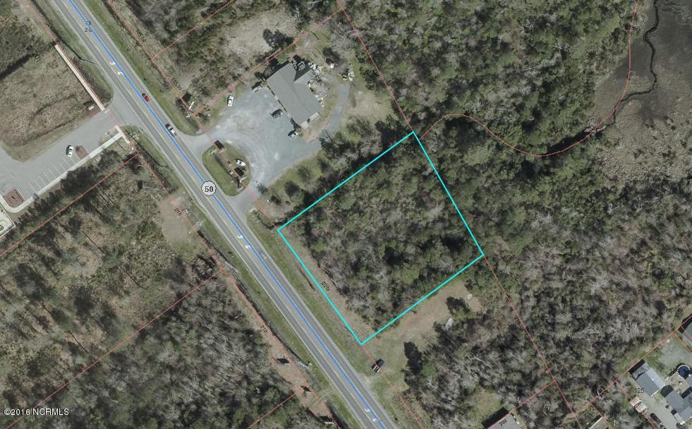 Wooded lot zoned C3 in Surf City on the main corridor before the Surf City Bridge. 0.96 acres per Pender GIS records, however, when using the mapping tool on GIS website, it shows 1.11 acres when measuring the points. Please see picture for reference. Survey needs to be obtained to verify.